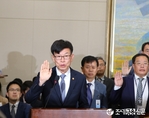 (조세금융신문=김필주 기자) 정무위원회 공정거래위원회 국감에서 김상조 공정위원장이 공정거래위원회, 한국소비자원, 한국공정거래조정원 등에 대한 선서를 하고 있다.