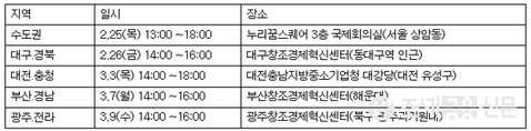 (조세금융신문=나홍선 기자) 창업지원사업을 하는 정부 부처들이 합동으로 전국 5개 주요도시에서 정부의 창업지원사업을 소개하는 통합 설명회를 개최한다.미래창조과학부(장관 최양희)는 문화체육관광부(장관 김종덕), 중소기업청(청장 주영섭), 특허청(청장 최동규) 등 창업지원사업을 수행하는 부처들과 합동으로 각 지역의 창업기업과 예비창업자를 위한 ‘2016년도 정부 창업지원사업(K-startup) 통합 설명회’를 개최한다고 25일 밝혔다.이번 설명회는 ‘K-startup’이란 통합브랜드로 진행하는 정부의 창업지원사업에 대한 관심과 접근성·편의성을 고려해 서울, 대전, 대구, 부산, 광주 등 지역을 대표하는 5개 지역에서 각 지역별 창조경제혁신센터와 연계해 진행된다.미래부에 따르면, 이번 행사는 창조경제 활성화를 위해 추진한 각 부처의 지속적인 창업지원 개선 노력을 결집해 창업자가 정부의 지원 사업을 한눈에 이해할 수 있도록 돕고 지역 창업생태계 구축을 위한 것이다.설명회에서는 창업을 지원하는 각 부처별 대표사업에 대한 세부 추진방향, 지원 대상, 지원 규모, 일정 소개 및 질의‧응답으로 진행하며, 성장단계 및 지원분야에 따른 각 수요 기업들에 적합한 지원 사업을 제