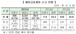(조세금융신문=나홍선 기자) 2015년 해외금융계좌 신고 결과 826명이 총 36조9천억 원을 신고, 전년대비 신고인원은 6.7%, 신고금액은 52.1% 증가한 것으로 나타났다.3일 국세청에 따르면, 2015년 해외금융계좌 신고인원은 826명으로 전년(774명)보다 52명이 늘었으며, 신고계좌 수는 8337개, 신고금액은 36조 9천억 원으로 전년(24조3천억원)보다 12조6천억원(52.1%↑) 증가했다.신고인원 중 개인의 경우 총 412명이 1593개 계좌, 2조 7천억 원을 신고, 전년보다 신고인원이 5.9% 증가(금액은 전년 수준)했다.법인의 경우에는 총 414개 법인이 6744개 계좌, 34조 2천억 원을 신고, 전년보다 인원수는 7.5%, 금액은 58.8% 증가했다.신고금액을 구체적으로 보면, 개인 1인당 평균 신고금액은 65억 원이었으며, 법인 1개당 평균 신고금액은 827억 원이었다.금액대별로는 개인의 경우 신고금액 20억 원 이하가 174명(42.2%)으로 가장 많았고, 50억 원 초과자는 전체의 27.4%인 113명이었다.반면 법인은 50억 원 초과가 247개로 전체의 59.7%로 가장 많았다..전체 신고금액 중 예·적금 계좌의 금액은 26조