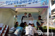 (조세금융신문=나홍선 기자) 영동세무서(서장 한숙향)는 영동군의 최대 축제인 ‘2015 영동 포도축제’에서 세정홍보를 적극적으로 실시하는 한편 영동군민들의 성실납세에 대한 감사의 마음을 표현했다.영동세무서에 따르면, 영동 포도축제 기간 중인 지난 8월 27일부터 30일까지 4일간 영동군청의 협조로 전용 세무상담 부스를 설치, 재산제세 등의 세무상담을 진행하는 현장 민원상담실을 운영했다. 현장 민원상담실에서는 농민 생산자, 농산물 유통업자, 와인 생산 업체, 축제 참가 사업자 등에 대해 맞춤형 세무상담을 진행하여 큰 호응을 얻었다. 특히 현장상담실에는 관내 세무대리인도 함께 참여해 직원들과 함께 세무상담 및 유익한 세무정보를 제공하는 등 납세자와의 적극적인 현장소통을 위해 노력했다. 뿐만 아니라 영동세무서장과 직원들은 어깨띠를 두르고 축제장을 찾은 내방객들에게 홍포 리플릿을 배부하는 등 활발한 세정홍보도 펼쳤다. 특히 현금영수증, 전자세금계산서, 안심상속 원스톱 서비스, 사업용 계좌, 근로·자녀 장려금 등 역점 추진 정책에 대한 다양한 세정홍보를 전개하면서 지역 군민들을 위해 현금영수증의 필요성과 혜택 등의 내용을 담은 자체 리플릿을 제작·배부하기도 했다.행사