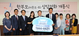 7월 1일 한국건강가정진흥원에서 열린 ‘한부모 상담전화’ 개통식에서 디아지오코리아 조길수 대표(좌측에서 여섯번째), 여성가족부 권용현 차관(좌측에서 다섯번째), 한국건강가정진흥원 김태석 이사장(좌측에서 세번째)이 상담전화 개통식을 진행한 후 기념촬영을 하고 있다.<사진=디아지오코리아>(조세금융신문=나홍선 기자) 디아지오코리아의 지원으로 한부모들이 전화 한통만으로 임신, 양육, 정책에 대한 상담을 받을 수 있게 됐다.글로벌 주류기업 디아지오코리아(대표 조길수)는 7월 1일 한국건강가정진흥원에서 여성가족부와 함께 한부모(미혼모•부) 지원을 위한 전용 상담 전화 개통식을 개최했다고 밝혔다. 디아지오코리아는 이번 사업 추진을 위해 ‘디아지오코리아 마음과마음재단’을 통해 2018년 6월까지 총 4억 원을 여성가족부 산하기관인 ‘한국건강가정진흥원’에 지원할 방침이다. 디아지오코리아에 따르면, 그동안 미혼모•부에게 제공되는 급여 및 서비스는 다양화됐지만 미혼모 또는 미혼부가 된 직후 초기 접촉 지점이 부재하거나 단절적으로 운영되는 수준에 그쳤다.이같은 상황을 개선하고자 개설된 한부모(미혼모R