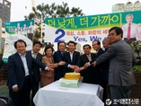 제29대 한국세무사회장 선거에 출마한 기호 2번 조용근 후보가 8일 선거사무소 개소식에서 참석자들에게 인사말을 하고 있다.(조세금융신문=나홍선 기자) 제29대 한국세무사회장 선거에 출마한 기호 2번 조용근 후보의 선거사무소 개소식이 8일 오후 5시 석성세무법인에서 열렸다.이 자리에는 조용근 후보와 런닝메이트 부회장 후보로 출마한 신광순‧안수남 세무사를 비롯해 많은 세무사들과 지지자들이 참석했다.전진관 세무사의 사회로 시작된 행사는 이종탁 세무대학세무사회장(서울지방세무사회 부회장)의 경과보고와 조 후보의 내빈 소개 및 내빈의 격려사, 케이크 절단 등의순서로 진행됐다.조 후보는 “이 자리에 참석한 모두가 귀하신 분이며 내빈이다. 모두를 위해 박수를 쳐 달라”는 말을 한 뒤 행사에 참여한 내빈들을 꼼꼼하게 소개했다.특히 조 후보는 현 세무사회 임원들을 제외한 나머지 내빈들에게는자신과의 관계를 곁들여 가는 등 상세한 설명을 곁들여 가며 소개했다.조 후보는 우선 강성원 공인회계사회장은 “가장 가까운 친구”라고 소개했으며, 이어 부부관계의 1인자라고 일컬어지는 정태기 크리스챤치유상담대학원대학교 총장과 밥퍼로 유명한 최일도 목사