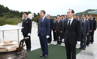 임환수 국세청장을 비롯한 국세청 간부들이 국립대전현충원에서 순국선열 및 호국영령에게 참배했다.<사진=국세청>(조세금융신문=나홍선 기자) 임환수 국세청장은 현충일을 앞두고 하루 전날인 5일 오전 직원들과 함께 국립대전현충원을 들러 참배했다.이날 참배에는 임 청장 외에도 김봉래 차장과 본청 국장 9명, 운영지원과장, 대변인, 정책보관 등 14명이 함께 했다.