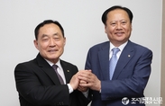 기자회견을 갖고 기념촬영을 하고 있는 임정완(왼쪽), 최원두 세무사.(조세금융신문=나홍선 기자) 임정완 세무사(윤리위원장)과 최원두 세무사(전 윤리위원장)간 2파전이 예상됐던 차기 윤리위원장 선거가 최원두 전 윤리위원장의 단독 입후보로 결론이 났다.임 윤리위원장은 2일 기자들을 만난 자리에서 “최 전 윤리위원장과 대화를 통해윤리위원장 선거에 후보 등록을 하지 않기로 용단을 내렸다”고 밝혔다.임 윤리위원장은 “윤리위원장 자리를 놓고 경쟁하는 것을 놓고 리턴매치라는 말도 나오는 등 말이 말을 많이 만들어 내더라”며 “윤리위원장이라는 자리의 성격을 생각할 때 그 자리를 가지고 다툰다는 것이 회원들 앞에서 부끄러운 행동이라고 생각해 후배를 위해 용단을 내려야겠다고 생각했다. 서류는 만들어 놨지만 접수하지 않겠다”고 말했다.임 윤리위원장은 이어 “당초에는 축구 전반전이라고 생각해 후반전은 더 잘 뛸 수 있겠다고 생각했지만 차제에 필드를 떠나 코치 또는 감독으로 가는 게 맞겠다고 생각했다”며 “최 세무사는 전임 윤리위원장을 역임한 바 있어 잘할 수 있을 것이라고 믿는다”고 덧붙였다.최원두 세무사 역시 “우리 세무사회에서 선거
