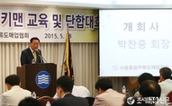 서울종합주류도매업협회의 '2015 회원사 키맨 교육 및 단합대회'가 28일 오전 서울 서초구 한국교원단체총연합회관에서 열린 가운데 박찬중 회장이 인사말을 하고 있다.(조세금융신문=나홍선 기자) 서울종합주류도매업협회(회장 박찬중)는 5월 28일 서울교총회관에서 ‘2015 회원사 키맨 교육 및 단합대회’를 개최했다.국세청 명령고시 내용 홍보 및 지입차 근절에 대한 방안 수립, 도매사 경영수지 개선을 위한 토론을 목적으로 개최된 이번 행사에는 서울종합주류도매업협회 소속 회원사 대표 및 임원 등 200여 명이 참석한 가운데 진행됐다.특히 우리나라 주류유통산업의 발전방향에 대한 초빙강사 강의와 조영조‧최근희‧서기준 서울종합주류도매업협회 부회장들의 내구소비재 규정 준수 방안 및 지입차 근절 방안 등에 대한 발표는 참석자들의 큰 관심을 끌었다.박찬중 서울종합주류도매업협회 회장은 개회식 인사말을 통해 “서울주류도매협회에서 처음으로 개최하는 회원사 키맨교육에 회원사들의 적극적인 관심과 참여를 해준 데 대해 감사드린다”며 “이번 교육이 회원사의 단합 및 회원사와 주류도매업계 발전에 기여하는 의미있는 시간이 되길 바란다”고