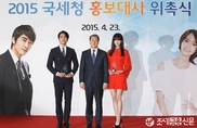 국세청은 23일 연예인 송승헌과 윤아를 2015 국세청 홍보대사로 위촉했다.(조세금융신문=나홍선 기자) 지난 3월 3일 납세자의 날에 모범납세자로 선정된 송승헌과 윤아가 2015년 국세청 홍보대사로 위촉됐다.국세청은 4월 23일 오전 서울지방국세청에서 홍보대사 위촉식을 갖고 ‘제49회 납세자의 날’에 모범납세자로 선정돼 대통령 표창을 수상한 연예인 송승헌과 윤아를국세청 홍보대사로선정했다.국세청은연기대상 수상 경력이 있는 매력있고 감성적인 연기파 배우 송승헌과인기그룹 멤버이면서 성숙된 연기자로국내외의 많은 사랑을 받고 있는 윤아는성실납세자일 뿐만 아니라 꾸준한 기부활동으로 사회공헌에도 적극 참여하는 등 ‘국민이 신뢰하는 공정한 세정’을 펼치고 있는 국세청과 잘 어울려 홍보대사에선정했다고 설명했다. 한편 이들 두 홍보대사는 앞으로 2년간 성실납세문화 조성을 위해 홍보포스터 모델 등 다양한 홍보활동에 참여할 예정이다.