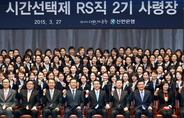 27일 오전 신한은행 본점에서 열린 시간선택제 RS직 사령장 수여식을 마치고 조용병 은행장(맨앞줄 왼쪽부터 다섯번째)과 130명의 신입직원들이 파이팅을 외치고 있다.<사진=신한은행>(조세금융신문=나홍선 기자) 신한은행이 일반직 350명, 경력단절여성 280명 등 총 780명을 신규채용하고, 퇴직직원을 대상으로 시간선택제 전담관리직 220명을 채용하는 등 총 1000명을 채용할 방침이다. 신한은행은 29일 이같은 내용의 2015년 채용계획을 발표했다. 신한은행의 채용계획에 따르면, 쳥년채용은 ▲일반직 350명 ▲특성화고 졸업예정자 70명 ▲장애/보훈 특별채용 80명 등 총 500명 규모다. 이는 전년 대비 약 35% 증가한 수치이다.청년채용과 함께 이번 채용계획에는 2014년부터 시작된 경력단절여성을 중심으로 한 정규직 시간선택제 직원 채용도 포함됐다. 신한은행은 시중은행 중 가장 많은 규모인 시간선택제 RS(Retail Service)직 220명을 지난해 6월 영업점에 배치한 데 이어 올해에도 280명을 채용할 방침이다. 신한은행은 이와 함께 퇴직직원을 대상으로 하루 2시간동안 1개 영업점의 자점감사 및 사고예방 등의 업