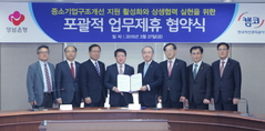경남은행 이진효 본부장(사진 왼쪽 네번째)과 한국자산관리공사 이종진 본부장(사진 오른쪽 네번째)이 ‘업무제휴 협약’을 체결한 후 기념촬영을 하고 있다.<사진=경남은행>(조세금융신문=나홍선 기자) 경남은행이 한국자산관리공사와 ‘업무제휴 협약’을 체결하고 지역 중소기업 구조개선 지원 활성화 및 상생협력 확대에 적극 나설 방침이다. 경남은행은 27일 오전 본점 소회의실에서 이진효 본부장과 한국자산관리공사 이종진 본부장 등 실무자들이 참여한 가운데 ‘업무제휴 협약식’을 갖고 상호 포괄적 협력 체제를 구축키로 합의했다.경남은행에 따르면, 양 기관은 이번 협약에 따른 구체적인 실행 방안으로 ▲중소기업 구조개선 지원을 위한 자산인수ㆍ정책금융지원과 부실채권 효율적 관리방안 ▲양 기관의 인프라를 활용해 시너지 창출 ▲지역금융 선순환을 위한 지역은행과의 금융거래 확대 ▲사회공헌활동 등 다양한 분야에 걸쳐 상호 협력하게 된다. 특히 경남은행은 161개 영업점을 통해 일시적으로 유동성 애로를 겪는 중소기업을 추천 받아 한국자산관리공사와 함께 지원업체를 선정, 공동실사를 통해 한국자산관리공사가 감정가에 근접한 가격으로 사업장을 매입하
