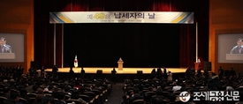 기획재정부와 국세청, 관세청이 주관하는 '제49회 납세자의 날' 기념식이 3일 오전 10시 서울 코엑스 컨벤션센터 오디토리움에서 열린 가운데 최경환 경제부총리 겸 기획재정부 장관이 치사를 하고 있다. <사진=전한성 기자>(조세금융신문) 정부는 3월 3일 오전 10시 삼성동 코엑스 컨벤션센터에서 제49회 ‘납세자의 날’ 기념식을 개최했다. 이날 행사에는 모범납세자 등 훈·포장 수상자 및 가족, 기획재정부·국세청·관세청 관계자 등 약 1,100명이 참석한 가운데 진행됐다.이날 행사에서 정부는 모범납세자(302명), 세정협조자(68명), 유공공무원(197명) 및 우수기관(8개)에 대한 포상을 수여했다.또한 연예인 송승헌, 임윤아(윤아)에게 사회봉사활동 및 성실납세 공로를 인정해 대통령 표창을 수상했다.이와 함께 정부는 연간 일천억원 이상의 세금을 자진납부해 국가재정에 크게 기여한 10개 기업에게 ‘고액 납세의 탑’을 수여했다.삼성전자㈜가 ‘국세 삼조사천억원 탑’을 수상했으며, ‘국세 사천억원 탑’은 삼성디스플레이㈜, ‘국세 삼천억원 탑’은 삼성중공업㈜, 롯데쇼핑㈜, ‘국세 일천억원 탑’에는 ㈜이마트, ㈜KB국민카드, 동부화재해상보험㈜, 한국타