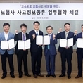 (조세금융신문=방영석 기자)KB손해보험은 6일 오전, 경기도 성남시에 위치한 한국도로공사 교통센터에서 국토교통부및 한국도로공사와 고속도로 교통사고 발생 시 보험사에 접수된 사고 및 고장 정보를 실시간으로 공유하는 ‘사고정보 실시간 공유 및 사고예방 업무협약(MOU)’을 체결했다고 밝혔다. 이 날 협약식은 서명희 KB손보자동차보상본부장 상무와 김상도 국토교통부 종합교통정책관 국장, 김경일 한국도로공사 교통본부장을 비롯해 협약에 공동으로 참여하는 삼성화재, 현대해상, DB손해보험 임직원 등 정부기관 및 4대 주요 손보사 관계자들이 참석한 가운데 진행되었다. 이 날 체결된 주요 협약으로는 고속도로 교통사고 및 고장사고 보험사 접수 시 2차 사고 예방을 위한 사고정보 실시간 공유 및 정보 공유를 위한 전용 시스템 구축 등이다. 현재 고속도로 긴급상황(사고, 고장 등) 시 접수되는 대부분(80% 수준)의 정보는 보험사에 우선적으로 접수되고 있는 상황이다. 따라서 이번 협약을 통해 해당 정보를 한국도로공사와 실시간으로 공유함에 따라 2차 사고 예방은 물론 원활한 교통 흐름을 보장할 수 있을 것으로 기대된다. 향후 전용 시스템이 구축되면 고속도로에서 긴급상황 발생