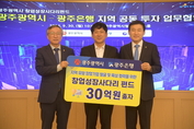 (조세금융신문=송기현 기자) 광주시, 광주은행, 광주테크노파크는 30일 광주시청에서 창업 성장 사다리 펀드 공동 투자 업무협약을 맺었다. 광주시에 따르면 광주은행은 광주시가 조성하는 창업펀드에 30억원을 출자하기로 했다. 광주시는 9대 주력산업 비상장 중소벤처기업을 주요 투자 대상으로 2025년까지 2천억원을 목표로 창업 성장 사다리 펀드를 조성하고 있다. 광주시 170억원, 광주은행 30억원 등 200억원이 지역 출자금으로 투입된다. 광주에 본사를 두거나 1년 이내 본사를 이전한 기업에 의무적으로 60% 이상을 투자하기로 해 창업기업 유입과 정착에 도움이 될 것으로 광주시는 기대했다. [조세금융신문(tfmedia.co.kr), 무단전재 및 재배포 금지]