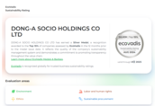 (조세금융신문=송기현 기자) 동아쏘시오홀딩스(대표이사 사장 김민영)가 글로벌 ESG(환경, 사회, 지배구조) 평가 기관인 에코바디스(EcoVadis)로부터 실버 등급을 획득했다고 2일 밝혔다. 2007년 프랑스에서 설립된 에코바디스는 글로벌 기업을 대상으로 사회적 성과, 공급망 등 지속 가능성을 평가한다. 에코바디스는 국제 지속 가능 표준에 기반 ▲환경 ▲노동 및 인권 ▲윤리 ▲지속 가능한 조달 4개 항목을 짚어본다. 평가에 따라 플래티넘(상위 1%), 골드(5%), 실버(15%), 브론즈(35%) 등급을 부여한다. 동아쏘시오홀딩스는 노동 및 인권, 윤리, 환경 분야 순으로 우수한 점수를 받아, 첫 평가에서 상위 15%에 해당하는 실버 등급을 받았다. 동아쏘시오홀딩스의 활동을 세부적으로 살펴보면 환경 항목에서는 환경경영시스템 국제 표준인 ISO 14001 인증을 기반으로 기후변화, 온실가스, 폐기물 등 경영활동에서 발생할 수 있는 주요 환경이슈에 대한 대응체계를 마련하고, 환경영향을 최소화하기 위한 환경방침 및 목표를 확립해 나가고 있다. 노동 및 인권 분야에서는 인권 및 다양성에 대한 구성원들의 인권 감수성 향상과 인권존중 문화 내재화를 위해 ▲직장 내 성