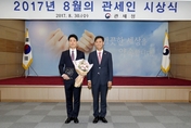 (조세금융신문=신경철 기자) 관세청은 30일 서울세관 김경일 관세행정관을 8월의 관세인으로 선정해 서울세관에서 시상했다고 밝혔다. 김 행정관은 상품가치가 없는 불량 반도체 웨이퍼 가격을 부풀려 294회에 걸쳐 1470억원을 홍콩 페이퍼컴퍼니로 허위수출해 부당하게 무역금융을 취득하는 등 4000억원대 무역금융 범죄 일당 6명을 검거한 공로가 인정됐다. 관세청은 또 업무 분야별로 우수한 성과를 낸 직원도 함께 시상했다. ‘일반행정분야’에는 발전세트 품목분류 오류 및 경주대회용 자동차 부당 재수출‧재수입 면세 적발로 129억원 추징하는데 기여한 관세청 감사담당관실 정재하 관세행정관이 선정됐다. ‘통관분야’에는 항공기 부분품 FTA 협정세율 부당적용 및 전기통신기용 충전기 품목분류 오류 등 56억원 상당을 적발하는데 기여한 인천세관 임지연 관세행정관이 뽑혔다. ‘심사분야’에는 폐배터리(관세0%)와 납파우더(관세8%)를 수입해 납괴를 생산하면서 고세율의 납파우더만으로 생산한 것처럼 허위로 부당환급 받은 사실을 적발해 5억4000만원을 추징한 부산세관 하윤정 관세행정관이 선정됐다. ‘중소기업 지원분야’에는 ‘FTA무역인재 Job-Dream 페스티벌’ 및 ‘잡매칭 Day