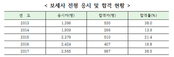 (조세금융신문=신경철 기자) 관세청은 16일 ‘2017년 보세사 전형’ 합격자 987명을 발표했다. 지난달 9일 실시된 2017년 보세사 전형에 총 2565명이 응시하고, 987명이 합격해 합격률은 38.5%로 나타났다. 합격자 명단은 관세청 홈페이지와 한국관세물류협회 홈페이지에서 확인할 수 있다. 보세사 자격증은 오는 23일부터 우편으로 교부할 예정이며 향후 보세사로 근무하고자 할 때에는 한국관세물류협회 본회 또는 지역 협회에 등록해야 한다. 관세청에 따르면 올해 보세사 전형 합격률(38.5%)은 전년(16.8%)대비 129% 증가했고, 합격자 평균 점수(69.7점)는 작년평균(67.4점)에 비해 2.3점 상승했다. 특히 합격자의 70% 이상이 20~30대 연령층으로 나타나 청년층의 보세사 자격증에 대한 관심이 높은 것으로 나타났다. 보세사는 보세창고, 보세공장, 보세판매장(면세점) 등 보세구역 운영인이 반드시 채용해야 하는 전문자격인으로 최근 보세구역 증가와 물동량 증가에 따라 보세사 자격증 수요가 꾸준히 증가하고 있다. 관세청 관계자는 “앞으로 보세사 제도를 활성화해 통관물류·화물분야 전문가를 육성하고, 대내외적으로 물류경쟁력 제고를 위해 지속적으로 노