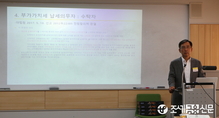 (조세금융신문=신경철 기자) 제71차 금융조세포럼이 13일 오전 7시 15분 서울 여의도에 위치한 KRX한국거래소 본관 2층에서 열렸다. 민홍기 변호사(법무법인 에이펙스)가 포럼에서 '부동산펀드 재산세 과세문제'를 주제로 발표를 하고 있다.