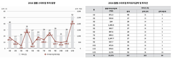 (조세금융신문=신경철 기자) 지난해 국내 스타트업(신생 벤처기업) 가운데 가장 많은 투자금을 유치한 곳은 화장품 판매 서비스 어플 '미미박스'의 운영사인 미미박스로 나타났다. 스타트업 정보 사이트 플래텀은 '2016 연간 국내 스타트업 투자동향 보고서'에서 미미박스가 작년 1430억원의 투자를 받아 유치액 순위 1위에 올랐다고 밝혔다. 보고서는 지난해 발표된 스타트업 투자 소식 347건과 인수합병 22건을 토대로 작성됐다. 미미박스는 지난해 8월 美 포메이션 그룹과 굿 워터캐피탈에 730억원, 지난해 12월 美 카우보이벤쳐스 등 8개 기업에서 700억원을 유치했다. 음식 배달 서비스 어플 '배달의 민족'을 운영하는 스타트업 기업 우아한형제들은 570억원, 웹툰 서비스인 '레진코믹스'를 운영하는 레진엔터테인먼트는 500억원을 유치해 각각 2, 3위를 차지했다. 또 소셜 커머스 '쿠차'와 모바일 콘텐츠 서비스인 '피키캐스트' 등을 거느린 옐로모바일은 478억원으로 4위를, 옐로모바일의 광고 자회사인 옐로디지털마케팅은 270억원의 유치해 5위를 기록했다. 이어 간편 송금 서비스 '토스'로 주목을 받은 비바리퍼블리카는 265억원의 투자를 유치해 6위에 이름을 올렸다