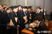 (조세금융신문=신경철 기자) 28일 논현동 건설회관2층 강당에서 열린 한국관세사회 제41차 정기총회에서 제24대 회장 선출을 위해 관세사들이 신분확인을받고 있다.