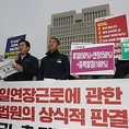 (조세금융신문=심재완 기자)한국노총은 휴일근로가 연장근로에 해당할 수 있는지를 판단하기 위한 대법원 전원합의체 공개변론을 하루 앞두고 대법원 앞에서 기자회견을 열고 탄원서를 제출했다. 한국노총은 17일 오전 서울 서초구 대법원 앞에서 기자회견을 열고 “휴일·연장근로 관련 대법원의 상식적인 판결을 촉구한다”고 밝혔다. 한국노총은 “휴일·연장근로수당을 중복 지급하면 사용자들은 자연스럽게 초과근로를 축소할 것”이라며 “노동자들은 단순히 돈 몇푼을 위해 이러한 요구를 하는 것이 아니라 더 나은 삶, 생명과 안전이 보장되는 노동현장, 궁극적으로는 노동이 존중받는 안전한 국가의 실현을 갈망하는 것”이라고 강조했다. 현재 근로기준법에 따르면 주당 근로시간은 40시간이며 주당 연장근로도 12시간을 넘길 수 없다. 따라서 일주일 최대 근로시간은 52시간이라 볼 수 있다. 반면, 고용노동부 행정해석에 따라 경영계는 일주일을 월~금요일까지 5일로 해석한 뒤 토~일요일에 각각 8시간씩 휴일근로가 가능하다고 본다. 이에 따르면 주당 근로시간 40시간, 휴일 근로시간 16시간, 연장 근로시간 12시간을 합해 최대 근로시간은 68시간까지 늘어날 수 있다. 경영계는 휴일근로가