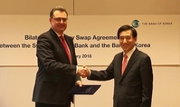 (조세금융신문=심재완 기자) 한국은행과 스위스 중앙은행이 통화스와프 계약서에 서명했다. 이주열 한은 총재와 토머스 조던 스위스 중앙은행 총재는 20일(현지시간) 스위스 취리히의 스위스 중앙은행 본점에서 양국 간 통화스와프 계약서에 각각 서명했다. 양국은 지난 9일 100억 스위스프랑(약 11조2천억원) 규모, 계약 기간 3년인 통화스와프를 체결하기로 발표한 바 있다. 한국은 지난해 11월 기축통화국인 캐나다에 이어 또 다른 기축통화국인 스위스와 통화스와프 협정을 추가해 외환 부문 안전판을 강화할 수 있게 됐다. 이주열 총재는 서명식에서 "오랜 기간 지속한 양국 중앙은행 간 우의와 협력이 통화스와프 계약 체결이라는 성과로 이어졌다"며 "이를 계기로 경제·금융·사회·문화 등 많은 분야에서 양국 간 협력이 한층 강화되기를 바란다"고 밝혔다. 조던 스위스 중앙은행 총재도 "양국 중앙은행의 금융협력은 물론 양국 우호 관계가 더 증진되기를 희망한다"고 말했다.