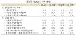 (조세금융신문=심재완 기자) 지난해 사상 최대를 기록한 수출에 힘입어 유발된 일자리도 역대 가장 많은 447만개에 달하는 것으로 추정됐다. 한국무역협회 국제무역연구원은 18일 ‘수출의 우리 경제에 대한 기여와 시사점’ 보고서를 통해 2017년 우리나라 수출이 사상 최대인 5737억달러를 기록하면서 이를 통해 직·간접적으로 생긴 취업유발인원은 447만명으로 집계됐다고 밝혔다.00 이는 지난 2016년(408만명)보다 40만명 정도 늘어난 수치다. 지난해 수출의 일자리 창출규모 확대에는 자동차(64만명), 반도체(36만명) 등 주력 제품의 수출 호조가 크게 기여했다. 우리나라 전체 취업자 중 수출이 유발한 취업인원이 차지하는 비중 또한 16.8%로 지난해보다 1.3%p 상승했다. 다만, 전체 취업인원은 증가했지만 수출 100만 달러당 취업 유발인원 수는 지난 2016년 8.22명에서 지난해 7.79명으로 소폭 줄었다. 국제무역연구원은 취업유발효과가 큰 섬유·가전 등의 수출이 부진한 반면 취업유발효과가 작은 반도체·석유화학 등의 수출이 급증했기 때문이라고 분석했다. 보고서에 따르면 지난해 우리나라 수출의 경제성장 기여율은 64.5%로 추정됐다. 2012