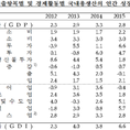 (조세금융신문=심재완 기자) 지난 2017년 실질 국내총생산(GDP)이 전년대비 3.1% 증가한 것으로 나타났다. 4분기 기준으로는 전년동기대비 3.0%의 성장률을 보였다. 한국은행이 25일 발표한 ‘2017년 4분기 및 연간 국내총생산(속보)’에 따르면 작년 실질 GDP는 3.1%로 지난 2014년 3.3%를 기록한 이후 처음으로 3%대 성장률을 회복했다. 민간소비(2.6%)가 완만한 회복세를 보인 가운데 설비 투자도 전년대비 14.6%로 큰 폭의 증가세를 보여 연간 GDP 성장에 기여했다. 건설 투자는 전년(10.7%)대비 하락한 7.5%를 기록했으나 높은 증가세로긍정적이란 평가다. 서비스업은 전년대비 2.1%를 기록해 2009년 1.5% 이래로 8년만에 가장 부진했다. 제조업과 건설업은 각각 전년대비 4.2%, 7.2%를 기록해 높은 성장률을 보였다. 작년 실질 국내총소득(GDI)은 전년대비 3.4% 증가했다. 5년 만에 가장 낮았지만반도체 가격 상승 등에 따른 교역조건 개선으로 경제성장률보다 높았다. 4분기중 실질GDP는 전기대비 0.2% 감소했다. 작년 4분기 민간 소비는 전기대비 1.0% 증가했다. 건설투자는 건설 및 토목건설이 모두 줄