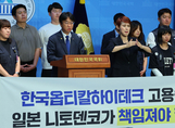 (조세금융신문=안종명 기자) 국회의원들이 공장 화재 이후 일방적인 청산·해고 당한 한국옵티칼하이테크 노동자들의 조속한 고용승계를 촉구에 나섰다. 국회 내 5개 야당(더불어민주당·조국혁신당·진보당·기본소득당·사회민주당)은 민주노총 금속노조 한국옵티칼하이테크지회와 함께 지난 15일 오전 9시 20분 국회 소통관에서 '한국옵티칼하이테크 노동자 고용승계 관련 일본 닛토덴코 결단 촉구 기자회견'을 열었다. 이날 국회의원들은 외국인투자기업 닛토덴코가 각종 혜택 받으며 구미의 한국옵티칼하이테크 공장을 세운 후 삼성과 LG에 납품해 막대한 이득을 취해오다가, 화재를 핑계로 생산 물량을 평택 한국닛토옵티칼 공장으로 이전하면서 노동자들을 일방적으로 해고했다고 규탄했다. 이에 외국인투자기업에서 일하는 노동자들이 같은 피해를 당하는 것을 막기 위해서라도 한국옵티칼하이테크 노동자들의 문제는 반드시 해결돼야 한다면서, 구미공장 노동자들을 평택공장으로 고용승계를 하는 것이 마땅한 일이라며 서한문을 제출했다. 사측 닛토덴코 대표이사 앞으로 발송된 5개 야당 국회의원 95명의 서한문엔 구미공장 해고 노동자들을 평택공장으로 고용승계하라는 내용이 담겨 있다. [조세금융신문(tfmedia.co