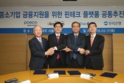(조세금융신문=양학섭 기자)우리은행은 17일 서울 중구 포스코대우 서울본사에서 이광구 은행장과 포스코대우 김영상 대표이사, 코스콤 정연대 대표이사, 스타뱅크 조문기 대표이사가 참석한 가운데‘중소기업 금융지원을 위한 핀테크 플랫폼 공동 추진 업무협약’을 체결한다고 밝혔다. 이번 협약으로 4개 회사는 공동 프로젝트팀을 구성하여 연내 서비스 개시를 목표로 중소기업과 소상공인에 특화된 새로운 핀테크 서비스인 ‘공급망금융’을 개발한다. 기존에는 국내 핀테크 사업이 간편결제 및 소액대출 등 개인간 P2P금융을 중심으로 개발되어 왔으나, 기업을 대상으로 하는 B2B금융을 개발하여 자금조달에 어려움이 있는 중소기업 및 창업기업을 지원한다는 계획이다. 한편, 공금망금융(Supply Chain Finance)이란 생산과 판매에 이르는 공급망(Supply Chain)에 참여하는 판매자, 구매자, 금융기관이 하나의 플랫폼을 구성하여 기업의 자금조달(Finance)을 지원하는 금융시스템이다. 예를 들어, 일반적으로 기존 기업이 자금을 조달하기 위해서는 기업의 신용이나 담보에 의존해야만 했으나, 판매자인 중소기업이 거래 자체를 주요 담보로 자금을 공급받을 수 있게 된다. 우리은