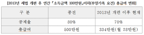 (조세금융신문=양학섭 기자) 연말정산시부양가족공제요건이2013년세법개정이전수준으로완화될전망이다.1일새정치민주연합김영록의원에따르면현행세법상`연간소득금액100만원이하(총급여기준334만원이하)`로돼있는부양가족소득금액기준요건이`근로소득자의경우총급여액500만원이하`로변경될것으로보인다.지난달29일국회기재위조세소위에서김영록의원이대표발의한소득세법개정안에대해기재부는법안의취지를살릴수있는대안으로부양가족요건완화를수용할수있다는입장을내놓았다.김의원의&