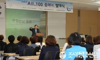 김주하 은행장이 'NH All100플래너' 발대식에서 인사말을 하고있다(조세금융신문=양학섭 기자) NH농협은행(은행장김주하)은15일서울종로구한국금융연수원에서임직원150여명이참석한가운데은퇴설계핵심인력인‘NHAll100플래너’ 발대식을개최하였다.‘NHAll100플래너’는은퇴설계비즈니스의선도적역할을수행할자산관리전문가로총135명(영업본부35명,거점점포100명)이선정되었다.이번에선발된은퇴설계핵심인력들은단계별전문교육프로세스를수료하였으며전원이금융연수원주관‘은퇴설계전문가-Master’자격증을취득하여은퇴설계전문가로서의실무역량을강화하였다.농협은행은이들핵심인력을