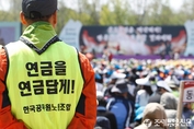 지난 4월 25일 서울역 광장에서 공적연금 강화를 외치는 '전국공무원노동조합'(조세금융신문=양학섭 기자) 여야는2일오후국회에서공무원연금개혁관련회동을갖고오는6일본회의에서공무원연금법개정안을처리키로최종합의했다.이날회동에는새누리당김무성대표와유승민원내대표,새정치민주연합문재인대표와우윤근원내대표가참석하여이같은내용을담은합의문에최종서명했다.다음은여야대표합의문전문.공무원연금개혁및국민연금강화를위한양당대표합의문1.여야는이번공무원연금개혁논의과정에서이해당사자들이참여하는&n