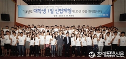 신협중앙회는 8월 19일 ‘신협 대학생 1일 체험 참가자’로 선발된 대학생 총 112명을 초청, ‘1일 신협 체험 행사’를 열었다. (사진 가운데를 기준으로 왼쪽 주진우 기획관리이사, 오른쪽 문철상 신협중앙회장)(조세금융신문) 신협중앙회가신협에대한이해를높이고신협취업기회는물론,미래신협을이끌어갈인재발굴을위해대학생들과함께하는다양한홍보활동을전개하고있다.먼저대학생대상프로그램인‘신협1일체험행사’가올해로4년째를맞이했으며,신협취업을준비하는대학생들에게가장인기있는행사로자리잡았다.신협중앙회는8월19일‘신협대학생1일체험참가자’로선발된대학생총112명을초청해,‘1일신협체험행사’를열었다.이번행사는대학생들을대상으로신협에대한이해의폭과친밀감을높이며,장래직업설계에도도움을주기위해마련했다.특히취업난으로어려움을겪는대학생들에게신협중앙회입사지원시1차서류전형통과의특전을부여해참가학생들의취업을지원한다.전국103여개대학에서432명이신청,4대1의높은경쟁률을보였으며,특히동시에추진한‘대학생대상신협발전방안공모전’에도160여명이참가해대학생들의높은참가열기를보여줬다.이번행사에서‘대학생주거부담완화와조합원확대에대한제언’을제출해신협발전방안최우수제안자로선정된권미희씨(25세,우송대)는“행사참가를준비하면서신협이금융업무외에지역사회