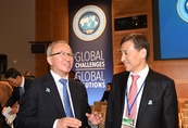 현오석 부총리가 12일 미국 워싱턴DC IMF에서 열린 IMFC 회의에 앞서 이주열 한국은행 총재와 대화를 나누고 있다. 사진=기획재정부 제공현오석 부총리 겸 기획재정부 장관은 12일(현지시간) "주요 20개국(G20) 등 여러 다자간 회의체에서 한국이 글로벌 키(key) 플레이어로 활약했다"고 밝혔다. G20 재무장관ㆍ중앙은행총재 회의 참석 차 미국을 방문 중인 현 부총리는 이날 동행기자단과의 만찬 간담회에서 이번 출장 성과를 소개하며 이같이 말했다. 현 부총리는 "이번 G20 및 국제통화금융위원회(IMFC) 회의에서 한국이 제안한 '거시경제 시나리오 분석'이 현재 진행되고 있다"며 "'국제통화기금(IMF) 개혁안'이나 '역(逆) 파급효과론'도 국제사회가 널리 받아들이는 등 한국이 글로벌 정책공조에 있어 핵심 역할을 하고 있다"고 평가했다. 그는 "이러한 능력을 국제사회에서 인정받은 결과 이번 IMFC 회의 도입 세션에서 모두발언을 요청받았으며, G20ㆍIMFC 합동 세션에서도 마무리 발언을 맡는 등 매 회의마다 주요 토론자로 지정되는 영예를 안을 수 있었다"고 설명했다. 현 부총리는 이번 회의기간 중 워싱턴DC 일대에 핀 벚꽃과 관련한 일화도 소개했다.