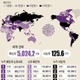 전 세계 신종 코로나바이러스 감염증(코로나19) 누적 확진자가 5천만 명을 넘어섰다. 점점 가팔라지는 글로벌 확산세가 확인되는 가운데 미국이 여전히 세계 최대의 피해국으로 집계되고 있다. 국제통계사이트 월드오미터 집계에 따르면 9일 누적 확진자는 5천65만8천292명이다. 누적 사망자는 126만620명으로 집계됐다. 미국 존스홉킨스대도 이날 전 세계 누적 확진자 수가 5천24만6천842명, 누적 사망자 수는 125만 4천30명이라고 밝혔다. 월드오미터 기준으로 글로벌 누적 확진자가 5천만명을 넘어선 시점은 지난 8일이다. 이는 중국이 중국 후베이성 우한에서 정체불명의 폐렴이 발생했다고 지난해 12월 31일 세계보건기구(WHO)에 처음으로 보고한 지 313일 만이다. 누적 확진자는 올해 6월 27일 1천만 명을 넘어서, 8월 10일 2천만 명, 9월 17일 3천만 명, 지난달 18일 4천만 명을 넘어섰다. 확진자 증가 속도는 코로나19 바이러스가 활발해지는 겨울을 맞이해 북반구에서 점점 빨라지는 추세다. 첫 보고 이후 179일 만에 1천만 명을 넘어선 뒤 44일 만에 2천만 명, 38일 만에 3천만 명, 32일 만에 4천만 명, 그리고 21일 만에 5천만 명을
