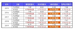 국세청의 종합청렴도와 외부청렴도 평가가 최하위 수준인 데 반해 내부청렴도 평가는 최상위 수준으로 나타나 양자 간 괴리가 크다는 지적이 나왔다. 국회 기획재정위원회 소속 더불어민주당 양경숙 의원은 11일 국민권익위원회 청렴도 평가 결과를 제출받아 분석한 결과 이같이 나타났다고 밝혔다. 권익위는 매년 중앙행정기관을 포함한 공공기관을 대상으로 청렴도를 평가해 발표하고 있다. 권익위 평가는 해당 기관의 업무를 접한 민원인을 대상으로 조사하고 해당 기관의 직원과 정책고객을 대상으로 평가하며, 부패행위가 발생했거나 언론에 부패사건이 보도된 경우 이를 감점 요인으로 해서 종합점수를 발표한다. 2015∼2019년 국세청에 대한 권익위의 청렴도 평가 결과를 보면 국세청은 종합청렴도에서 2015∼2017년에 4등급을 받았으며, 이때 5등급을 받은 기관이 1개에 불과해 4등급이지만 최하위나 마찬가지였다. 2018∼2019년에는 5등급을 받아 최하위에 머물렀다. 민원인의 설문이 크게 작용하는 외부청렴도 평가에서 2015∼2019년 5년 내내 5등급 최하위를 기록했다. 외부참여위원 등 정책고객을 대상으로 하는 평가에서도 2015∼2016년에는 3등급이었다가 2017년 2등급으로 한