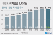 내년도 최저임금이 올해보다 1.5% 오른 8천720원으로 결정됐다. 최저임금을 심의·의결하는 사회적 대화 기구인 최저임금위원회는 14일 새벽 정부세종청사에서 9차 전원회의를 열어 내년도 최저임금을 시급 기준 8천720원으로 의결했다. 이는 올해 최저임금 8천590원보다 130원(1.5%) 많은 금액이다. 내년도 최저임금은 공익위원들이 낸 안으로, 표결에 부쳐져 찬성 9표, 반대 7표로 채택됐다. 표결에는 사용자위원 7명과 공익위원 9명이 참여했다. 회의에 참석한 한국노동조합총연맹(한국노총) 추천 근로자위원 5명 전원과 사용자위원 2명은 공익위원 안에 반발해 퇴장했다. 최저임금위는 근로자위원, 사용자위원, 공익위원 9명씩 모두 27명의 위원으로 구성된다. 전국민주노동조합총연맹(민주노총) 소속 근로자위원 4명은 이날 회의에 불참했다. 내년도 최저임금 인상률 1.5%는 국내 최저임금제도를 처음 시행한 1988년 이후 가장 낮은 수준이다. 지금까지 최저임금 인상률이 가장 낮았던 해는 국제통화기금(IMF) 외환위기 때인 1998년으로, 2.7%였다. 신종 코로나바이러스 감염증(코로나19) 사태에 따른 경제 위기를 맞아 중소기업과 영세 자영업자의 경영난을 우선 고려한