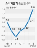 소비자물가 상승률이 13개월 만에 1%대로 올라섰다. 지난해 0%대 물가가 지속된 원인이었던 농산물과 석유류 하락의 기저효과가 사라지고 이들 품목의 가격이 상승한 데 따른 것으로 통계청은 분석했다. 신종 코로나바이러스 감염증 영향은 2월 물가에 반영될 것으로 예상됐다. 4일 통계청이 발표한 소비자물가 동향에 따르면 1월 소비자물가지수는 105.79(2015년=100)로 전년 동월 대비 1.5% 상승했다. 이 같은 상승폭은 2018년 11월(2.0%) 이후 14개월 만에 최대다. 소비자물가 상승률이 1%를 넘어선 것은 2018년 12월(1.3%) 이후 13개월 만이다. 작년 8월(0.0%) 보합, 9월(-0.4%) 사상 첫 마이너스(-), 10월(0.0%) 보합을 나타낸 소비자물가가 11월(0.2%) 4개월 만에 공식적으로 상승 전환한 뒤 12월(0.7%)에 이어 1월에도 상승폭을 키운 것이다. 품목 성질별로는 농·축·수산물이 1년 전보다 2.5% 상승했다. 무(126.6%), 배추(76.9%), 상추(46.2%)의 상승폭이 컸고, 감자(-27.8%), 마늘(-23.8%), 고구마(-21.4%), 귤(-20.3%) 등은 가격이 많이 내렸다. 공업 제품이 2.3
