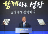 문재인 대통령이 9일 오전 코엑스에서 열린 공정경제 전략회의에 참석하면서 상생의 경제질서 확립을 위해 정책 역량을 집중하겠다는 의지를 내비쳤다. 정부의 경제정책에 대한 야권의 공세가 계속되고 있지만, 문 대통령은 소득주도성장·혁신성장·공정경제를 3대 축으로 하는 정책 기조를 꾸준히 끌고 가겠다는 의지를 거듭 강조한 셈이다. 특히 최근 일각에서는 문 대통령의 행보가 소득주도성장이 아닌 혁신성장 쪽으로 급격히 무게가 쏠린다는 분석도 흘러나왔지만, 문 대통령은 이날 공정경제가 혁신성장의 밑바탕이 된다는 점을 강조하면서 3대 가치가 조화를 이루는 구조를 만들겠다는 점을 분명히 했다. 문 대통령은 이날 축사에서 "상생협력은 협력업체의 경쟁력과 혁신성을 높여 중소기업과 대기업이 함께 성장하는 길"이라며 "우리는 함께 잘살아야 한다. 공정경제가 그 기반이 될 것"이라고 했다. 여기에는 대기업에만 성과가 집중되는 경제구조는 지속가능한 성장을 어렵게 만들어 결과적으로는 대기업의 경쟁력까지 약화할 것이라는 인식이 깔려있다. 문 대통령이 징벌적 손해배상제 도입, 일감 몰아주기 근절, 순환출자 고리 해소 등 재벌개혁 성과를 강조하면서도, 공정경제에 대한 기업들의 자발적