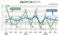 올해 3분기 한국 경제 성장률이 0.6%로 잠정 집계됐다. 이는 2분기와 같은 수준으로 속보치에서 큰 변동은 없었다. 한국은행이 4일 발표한 '2018년 3분기 국민소득(잠정)'을 보면 3분기 실질 국내총생산(GDP)은 400조1978억원(계절조정계열)으로 전 분기보다 0.6% 증가했다. 분기별 GDP 성장률은 작년 4분기 -0.2%에서 올해 1분기 1.0%로 뛰었으나 2분기에 이어 3분기에도 0%대 중반 성장세에 머물렀다. 속보치에 비교하면 설비투자(0.3%포인트)가 개선됐지만 건설투자(-0.3%포인트), 민간소비(-0.1%포인트)는 하향조정됐다. 전년 동기대비 성장률은 2.0%로 9년 만에 가장 낮다. 작년 3분기에 추석 효과 등으로 큰 폭으로 성장한 데 따른 기저효과가 있었다. 부문별로 보면 건설투자가 -6.7%로 외환위기(1998년 1분기 -9.7%) 이래 82분기 만에 최저였다. 추석 연휴 영향이 더해진 것으로 풀이됐다. 설비투자는 철도차량 등 운송장비는 늘었지만 기계류가 줄어서 -4.4%를 기록했다. 2분기 -5.7%보다는 나아졌지만 1년 전에 비하면 7.4% 뒷걸음질했다. 지식재생산물투자는 0.9%였다. 민간소비는 0.5% 성장했다