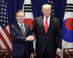 문재인 대통령과 도널드 트럼프 미국 대통령은 24일(현지시간) 김정은 북한 국무위원장이 평양 남북정상회담에서 완전한 비핵화 의지를 재확인한 것을 높이 평가하고 이를 토대로 2차 북미정상회담과 종전선언 일정을 심도 있게 논의했다. 두 정상은 대북제재를 유지하기로 하면서도 북한에 비핵화 시 맞을 청사진을 보여주며 완전한 비핵화 견인 방안을 지속해서 모색하기로 했다. 그러나 북한이 미국에 요구하는 상응조치에 대해서는 결과물을 도출하지 못한 것으로 알려졌다. 한미 정상은 이날 오후 미국 뉴욕에서 가진 회담에서 한반도의 완전한 비핵화를 이루고 항구적인 평화정착을 위한 공조와 한미동맹 강화 방안에 대해 폭넓고 심도 있게 협의했다고 김의겸 청와대 대변인이 브리핑에서 전했다. 김 대변인은 "양 정상은 대북제재를 계속하는 한편, 북한이 비핵화를 이룰 경우 얻을 수 있는 밝은 미래를 보여줌으로써 북한의 완전한 비핵화 의지를 지속해서 견인하는 방안을 모색하기로 했다"고 밝혔다. 다만 두 정상은 새로운 대북제재에 대해서는 논의하지 않았다. 청와대 관계자는 "북한이 완전한 비핵화를 이루면 새롭게 바뀐 북미 관계 속에서 경제발전 등 밝은 미래를 보장함으로써 비핵화를 촉진한