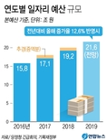 일자리 쇼크가 최대 과제로 대두되면서 내년도 일자리예산이 20조원을 훌쩍 돌파할 것으로 예상된다. 정부는 해마다 일자리예산을 늘리고 있지만, 효과가 가시화되지 않고 있어 연내 2차 추경이 필요하다는 지적도 나오고 있다. 민주당 김태년 정책위의장은 19일 국회의원회관에서 당·정·청 회의를 연 뒤 "내년 일자리 예산을 올해 증가율 이상으로 확대하는 등 내년도 재정기조를 보다 확장적으로 운용할 것"이라고 밝혔다. 올해 일자리 예산 증가율은 12.6%로 본예산 기준 19.2조원, 추경 예산 기준으로는 20조원이다. 내년 일자리 예산이 올해보다 12.6% 이상 늘어나게 되면 최소 21.6조원을 넘게 된다. 김 위의장은 "기존 주력사업의 경쟁력을 강화하고 업종별, 분야별 일자리 대책의 순차 발굴을 추진할 것"이라고 강조했다. 정부는 최근 긴급경제현안간담회에서도 일자리예산을 포함한 내년도 재정기조를 확장적으로 운영하기로 한 바 있다. 고용상황 개선을 위해 가용한 모든 정책수단을 동원하겠다는 것이다. 김동연 부총리 겸 기획재정부 장관은 16일 국가재정포럼에서 내년도 총지출 증가율 목표를 올해보다 2%포인트 높은 7.7% 이상으로 가져가겠다고 밝힌 바 있다.