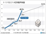 중앙선거관리위원회는 제7회 전국동시지방선거 투표일인 13일 오후 2시 현재 투표율이 46.8%로 집계됐다고 밝혔다. 투표는 이날 오전 6시 전국 1만4134개 투표소에서 일제히 시작됐으며 전체 유권자 4290만7715명 가운데 2009만3379명이 투표를 마쳤다. 오후 2시 현재 투표율은 2014년 6·4 지방선거 당시 같은 시각 투표율 42.5%보다 4.3%포인트 높은 수치다. 선관위는 오후 1시 투표율부터 지난 8~9일 실시된 사전투표와 거소투표 투표율도 합산해 반영했다. 이번 지방선거의 사전투표율은 20.14%로, 전국 단위 선거로는 두 번째로 높은 투표율을 기록했다. 오후 들어 투표율이 4년 전 6·4 지방선거 때보다 4%포인트가량 높은 것으로 나타난 만큼 이 격차를 유지하면 최종 투표율은 60%를 넘을 수 있을 것으로 보인다. 4년 전 6·4 지방선거의 최종 투표율은 56.8%였다. 지역별로는 전남의 투표율이 58.7%(92만5천776명)로 가장 높았다. 지방선거 승부처로 꼽히는 수도권 3개 지역(서울 44.7%·경기 44.1%·인천 42.2%)의 투표율은 모두 평균치를 밑돌았다. 인천은 17개 광역시·도 가운데 최저치를 기록했다.