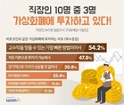 직장인 10명 가운데 3명 이상이 비트코인 등 가상화폐에 투자하고 있다는 설문조사 결과가 나왔다. 27일 구인구직 매칭플랫폼 '사람인'(대표 이정근)에 따르면 최근 직장인 941명을 대상으로 설문조사를 한 결과 응답자의 31.3%가 가상화폐에 투자하고 있다고 밝혔다. 이들이 가상화폐에 투자한 액수는 1인당 평균 566만원이었다. 100만원 미만이 전체의 44.1%로 가장 많았으며 ▲ 100만~200만원(18.3%) ▲ 1천만원 이상(12.9%) ▲ 200만~400만원(9.8%) ▲ 400만~600만원(7.8%) 등이 뒤를 이었다. 투자자의 80.3%는 이익을 봤다고 응답했으며, '원금 유지'와 '손실' 응답 비율은 각각 13.2%와 6.4%였다. 이익률에 대해서는 '약 10%'라고 응답한 직장인이 21.1%로 가장 많았으나 100% 이상도 19.4%에 달했다. 특히 100% 이상 이익을 냈다는 응답자의 평균 수익률은 425%에 달했다. 투자 이유로는 '고수익을 얻을 수 있는 가장 빠른 방법'이라는 응답이 54.2%(복수응답)로 가장 많았고, ▲ 적은 자본으로 투자 가능(47.8%) ▲ 장기적으로 가치 상승 기대(30.8%) ▲ 투자방법이 쉬워서(25