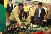 신한카드 위성호 사장(앞줄 오른쪽 세번째)이 평택 안중시장을 방문해 진웅섭 금융감독원장(앞줄 왼쪽 첫번째)과 시장의 물건을 둘러보고 있다. (조세금융신문=옥정수 기자)신한카드위성호사장이23일오전진웅섭금융감독원장,권선주IBK기업은행장등과함께경기도평택시안중읍에위치한안중시장을방문했다.위사장은시장상인들과가진간담회자리에서위사장은메르스때문에어려움에맞닥뜨린전통시장의애로사항을자세히듣고회사차원에서지원가능한모든대책을강구하기로했다.또한기부금2천만원을구세군에전달하기도했다.구세군은이기부금을평택지역복지단체들에전달하고,&nb