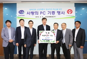 DGB생명 서울 본사에서 진행된 ‘사랑의 PC나눔식’에서 오익환 사장(좌측 네번째)을 비롯한 관계자들이 기념촬영을 하고 있다. (조세금융신문=옥정수 기자)DGB생명(대표오익환)은서울본사에서'사랑의 PC나눔 전달식'을 가졌다고 9일 밝혔다.'사랑의PC나눔운동'은사회단체,기관기업,개인으로부터중고컴퓨터를기증받아저소득층,장애인,기초생활수급자및해당복지단체에무상으로기증하는나눔활동이다.이날 사랑의PC보내기운동본부에전달된전산기기는PC,노트북,프린터등1천158대로수리과정을거쳐장애인,저소득층,사회복지시설등정보소외계층에게무상으로보급될예정이다.오익환&n