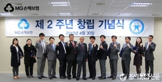 4월 30일 창립 2주년 기념식을 마치고 장기근속 수상자들이 기념촬영을 하고있다. (중앙이 김상성 MG손보 대표이사)(조세금융신문=옥정수 기자) MG손해보험(대표이사 김상성)은서울 역삼동본점 대강당에서 '창립 2주년 기념식'을 개최했다고 30일 밝혔다.이날 행사에서는 사내 설문조사를 기반으로 제작한 '변화' 관련 조이뉴스 동영상을 상영하고지난 2년 간 MG손보에 일어난 긍정적인 변화를 공유했다. 또 앞으로의 성장을 위해 필요한 변화내용을 함께 점검하며 회사의 발전을 위해 새롭게 각오를 다지는 시간을 가졌다.김상성 대표이사는 기념사를 통해 "힘든 인고의 세월을 창조와 열정의 시간으로 승화시켜준 임직원 및 영업가족 여러분께 감사드린다"며 "차별화된 상품개발, 민원 감축, 고객만족서비스를 제공해 강소 보험회사로 도약하자"고 말했다.한편 MG손보는 2013년 5월 3일 새롭게 출범한 이래 상품 마케팅 및 홍보 역량 강화로 회사 이미지 제고, 인지도 향상에 주력해왔다.