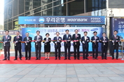 우리은행 본점 영업부에서 열린 ‘우리은행·삼성증권 금융복합센터 개점식’에서 이광구 은행장(왼쪽 7번째)과 윤용암 삼성증권 대표이사 사장(왼쪽 6번째)이 양사 임직원들과 함께 테이프 커팅식을 하고 있다.(조세금융신문=옥정수 기자)우리은행(은행장이광구)은서울중구에위치한본점영업부에서‘우리은행·삼성증권금융복합센터개점식’을열었다고28일밝혔다.이날개점한금융복합센터는우리은행의본점영업부와광양포스코금융센터,삼성증권의삼성타운지점등3곳에상호입점하는BIB(BranchInBranch)형태로운영된다.금융복합센터에는두회사의직원5명이교환배치되어고객들에게은행및증권업무와관련한서비스를상호제공하게된다.또공동으