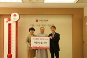 NH농협생명 이윤배 전략총괄부사장(오른쪽)이 장애인의 날을 맞아 승가원에 쌀을 전달한 후 승가원 원장 동준스님(가운데) 등과 기념촬영을 하고 있다.(조세금융신문=옥정수 기자)NH농협생명(대표이사김용복)은장애인의날을맞아장애인복지 전문법인인 '승가원'에쌀을전달했다고20일밝혔다.서울시중구정동에위치한서울사회복지공동모금회에서진행된이날행사는장애아동들의건강증진에실질적인도움을주고나눔문화의확산을위해마련됐다.이윤배NH농협생명부사장은전달식에서"어린이들이건강하고밝게성장해사회의큰기둥이되었으면하는바람이다"면서"앞으로도NH농협생명은사회적책임을다하고소외계층의동반자&nb