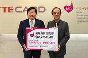 채정병 롯데카드 대표이사(좌측)가 서울중구 소월로 본사에서 지난 한 해 동안 임직원이 기부한 사회공헌기금과 헌혈증을 한국백혈병어린이재단에 전달했다. (조세금융신문=옥정수 기자)롯데카드(대표이사채정병)가서울중구소월로본사에서임직원이기부한사회공헌기금과헌혈증을한국백혈병어린이재단부산나음소아암센터에전달했다고17일밝혔다.이날 전달된 사회공헌기금은총986만1천540원으로 임직원들이자발적으로매월급여의끝전을모아기부한‘급여우수리나눔캠페인’과회사가임직원이모금한금액만큼동일금액을기부하는‘매칭그랜트(MatchingGrant)제도’로조성됐다.사회공헌기금과헌혈증은소아암환아치료를지원하는데사용될예