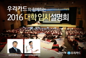 (조세금융신문=옥정수 기자) 우리카드(대표이사유구현)가대입수험생자녀를둔고객을대상으로오는27일오후1시반부터성균관대학교새천년홀에서‘2016대학입시설명회’를개최한다.이날 행사에서는온라인교육사이트메가스터디의남윤곤입시전략연구소장과한국학습코칭센터서상민대표가 약2시간동안1~2부로나눠‘2016년입시전망및학습코칭’에대한강연을 진행한다.참가신청은 오는 23일까지 우리카드홈페이지(www.wooricard.com)나모바일앱을통해 가능하다.당첨자는문자메시지를통해개별통보되며,동반1인까지참석할 수 있다.우리카드는 참가고객들에게
