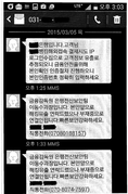 (조세금융신문) 금융감독원직원을사칭한스미싱(Smishing)문자가발견돼휴대폰사용자의각별한주의가요구된다.11일금감원은“최근‘금융감독원은행전산보안팀이동수 과장입니다.해킹유출연락드렸으나부재중으로연결안됩니다’라는스미싱문자가발견됐다”며‘금감원이동수과장주의보’를발령했다.금감원에 따르면 이번스미싱유도문자는‘해외접속결제시도IP로그인수집으로고객정보유출이추정돼금융안전을위해본인인증번호를입력하여야한다’는내용으로불특정다수에게대량발송되고있다.특히 최근